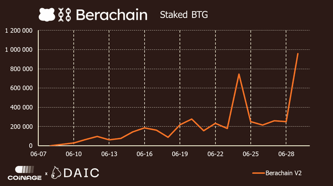 Also, the staked BGT amount is skyrocketing. More and more users delegate their BGT tokens to validators. (more than 4.6 million BGT were staked - ~212,000 per day!)
