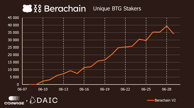 With the rising amount of accounts on Berachain also the unique BGT stakers per day are on the rise! Currently more than 30,000 accounts are staking their BGT rewards per day with validators!