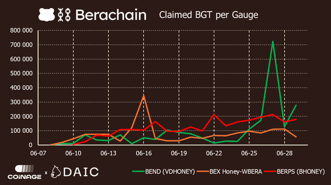 Currently BEND is distributing most BGT to users - followed by BERPS and BEX.