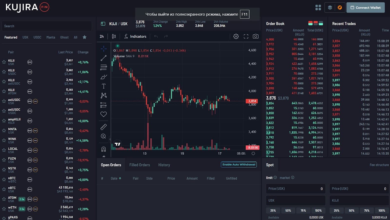According to CoinMarketCap, the KUJI token is traded on two CEX exchanges - MEXC and CoinEX - and on about 20 DEX platforms, including the services of the Kujira project, that we've already met earlier.
