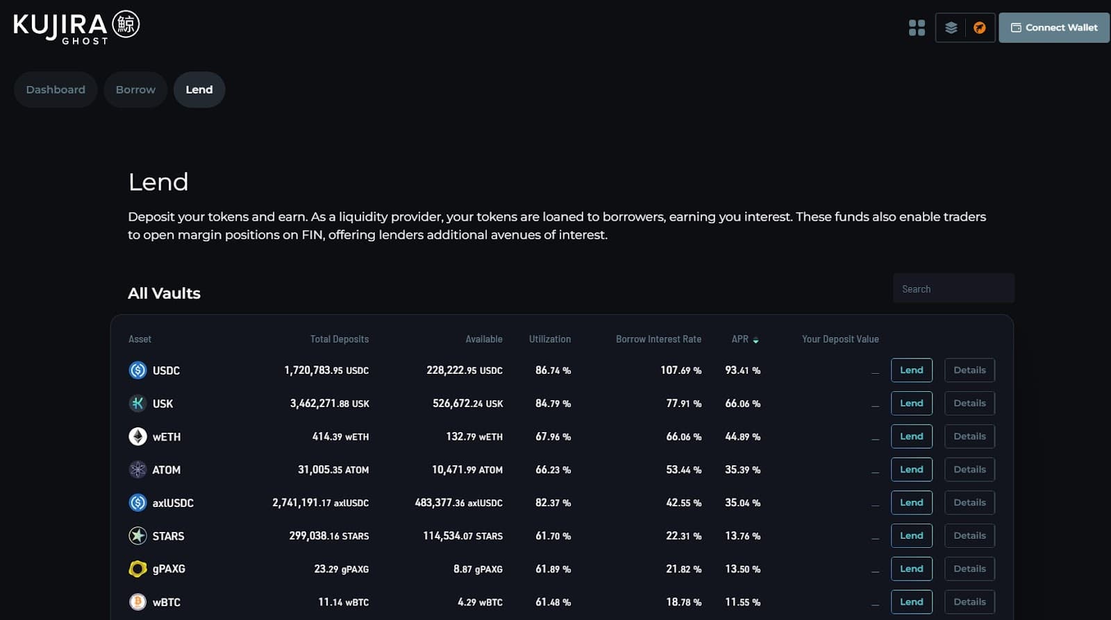 GHOST is a standout Money Market in the expansive Kujira universe. Functioning as a decentralized money market, GHOST seamlessly connects lenders and borrowers, establishing a user-friendly supply-demand framework that generates enticing returns for participants without artificial incentives.