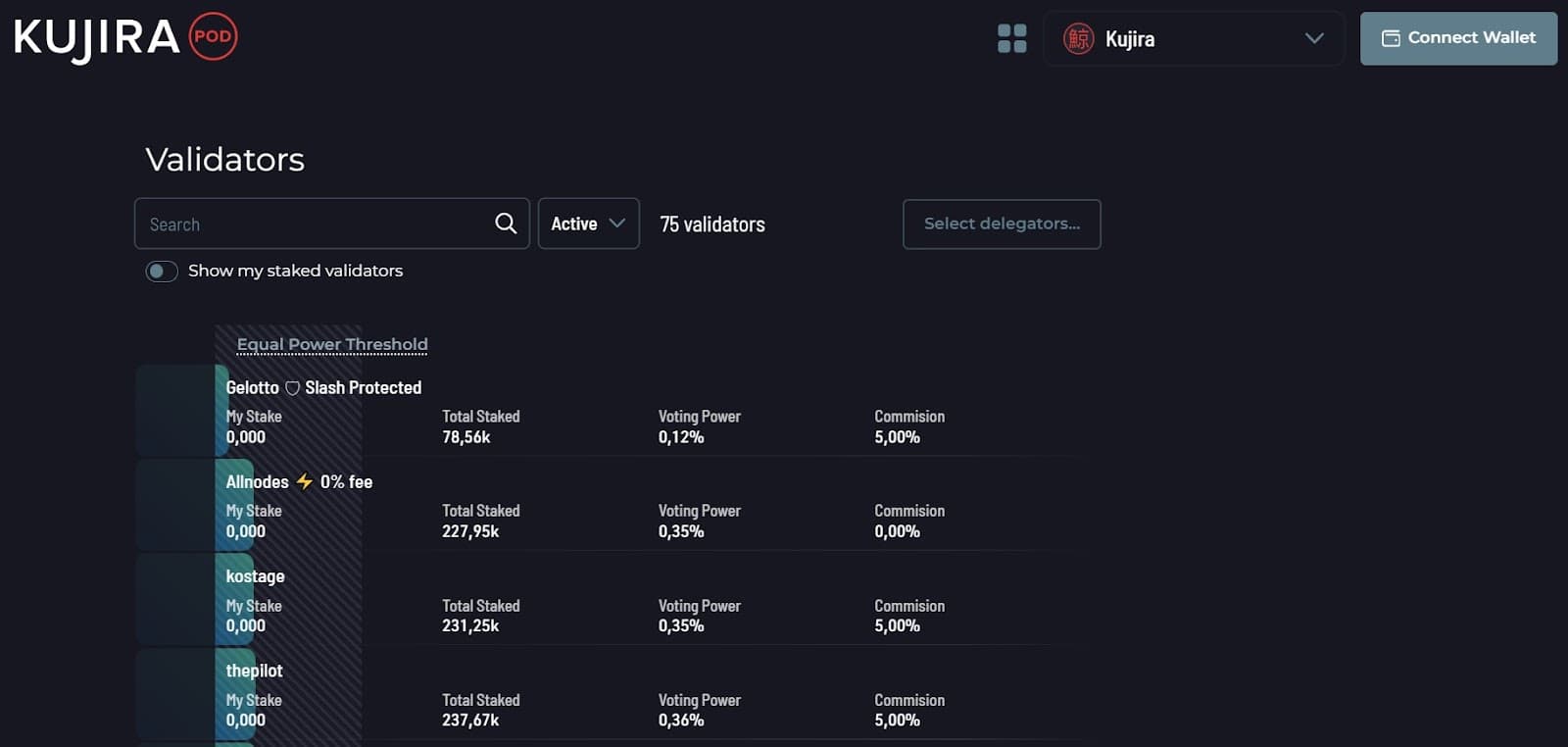In an effort to promote the decentralization of the network, Kujira provides an innovative dashboard for staking - POD.
