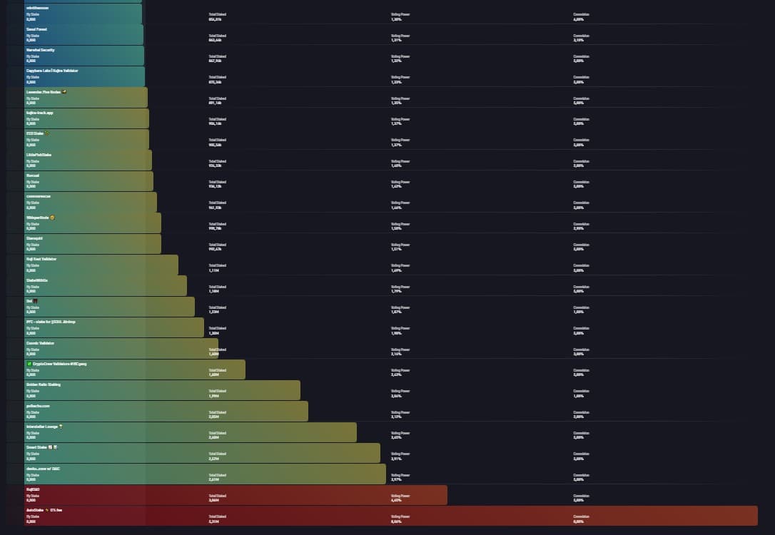 The new staking interface clearly displays how the voting power of an individual validator relates to the equal voting power that is often characteristic of an optimally decentralized Proof of Stake network setup. This tool allows users to distribute their stake based on the weight of the validators, ensuring an optimal level of decentralization.