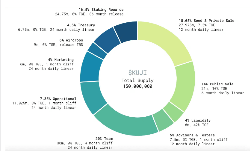 KUJI serves as a utility token to pay for network services and dApps, and all related payments are distributed to KUJI stakers. In addition, the KUJI token provides governance capabilities, allowing holders to actively participate in forming the future course of the network.
