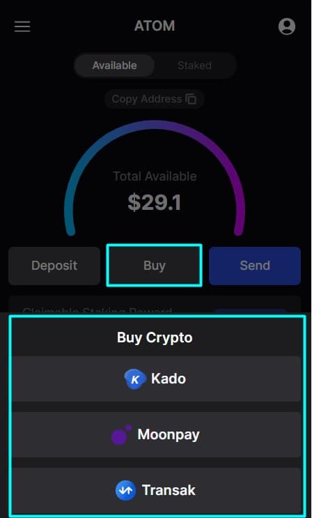 2. You can buy KUJI tokens directly from the Leap Wallet. (min $5)