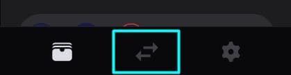 Step 2. After tokens purchased, find the button of bidirectional arrows on the bottom of the wallet and click to Swap ATOM tokens.