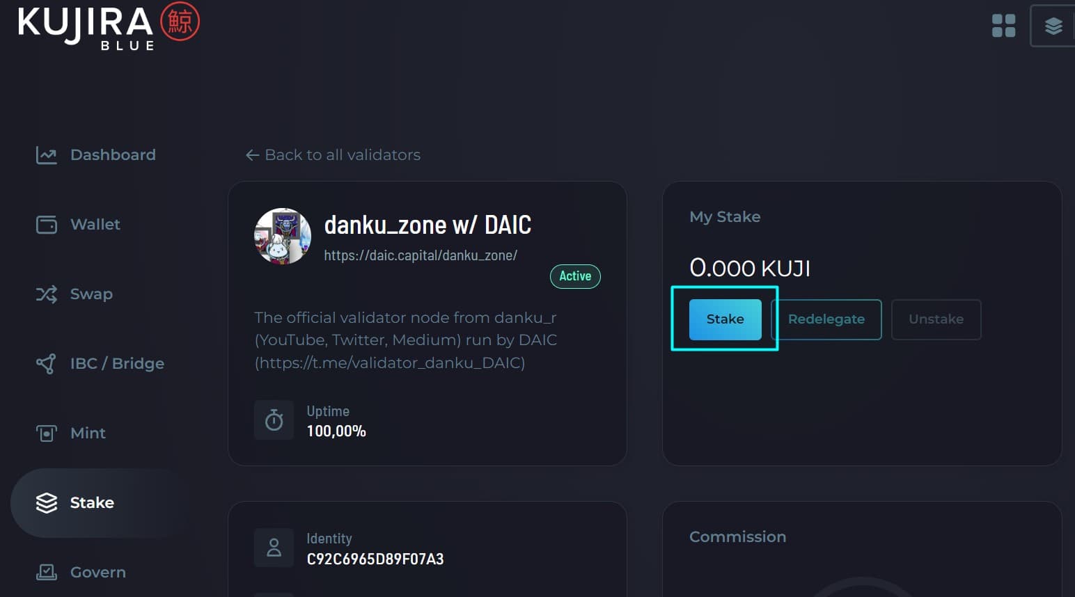 Step 6. In the search bar, type danku_zone w/ DAIC or click the link for choosing validator.