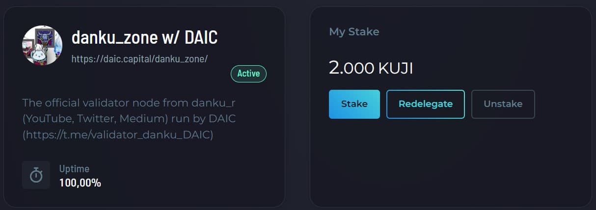 Once the transaction is validated, you will see your tokens in the stake of the selected validator.