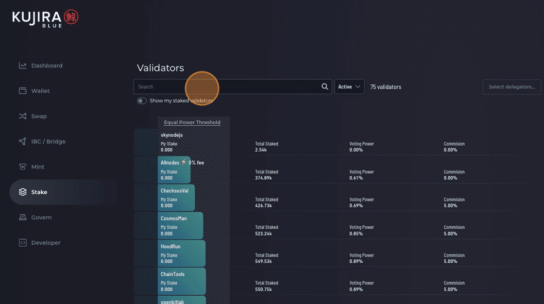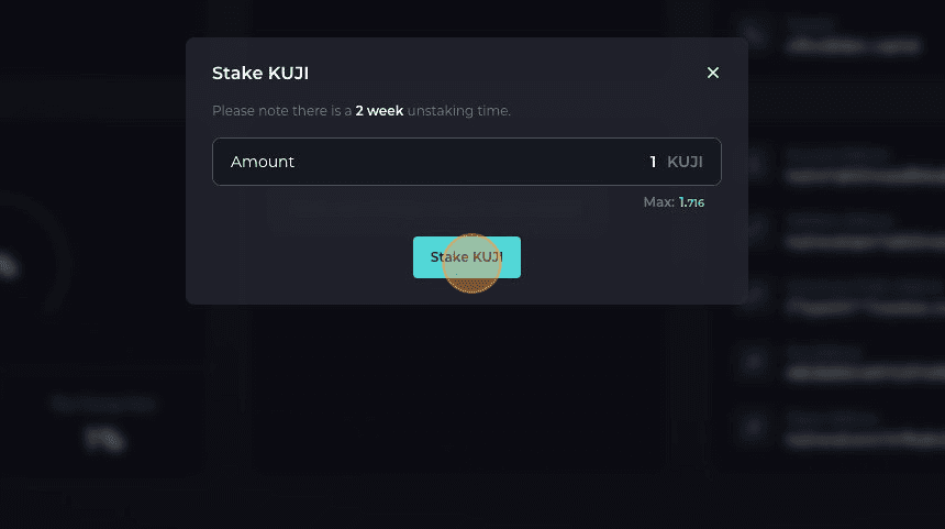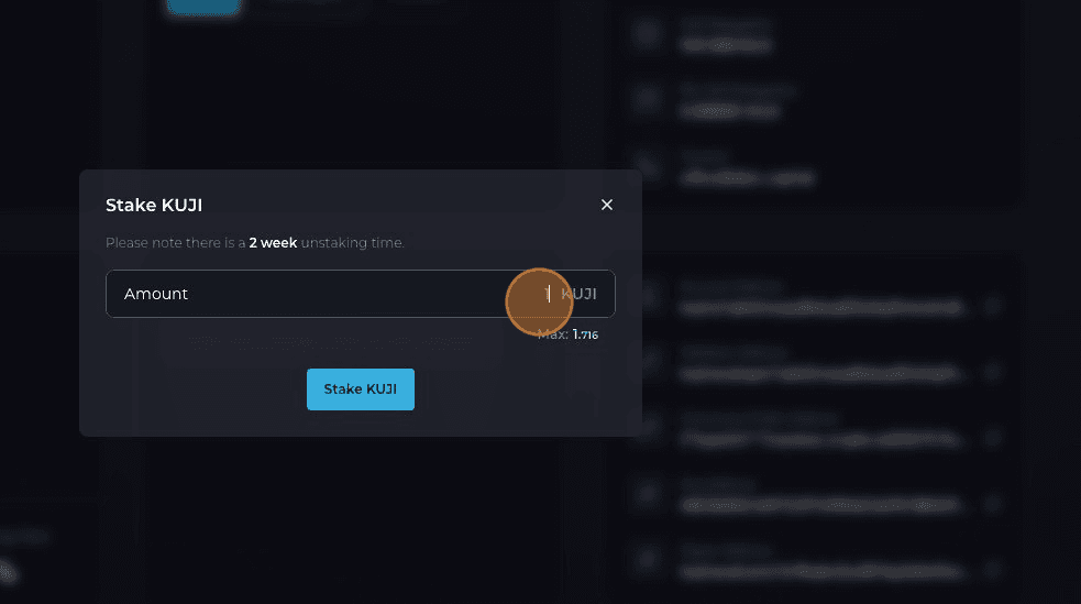 6. Click the Amount field and enter the number of KUJI tokens you want to stake