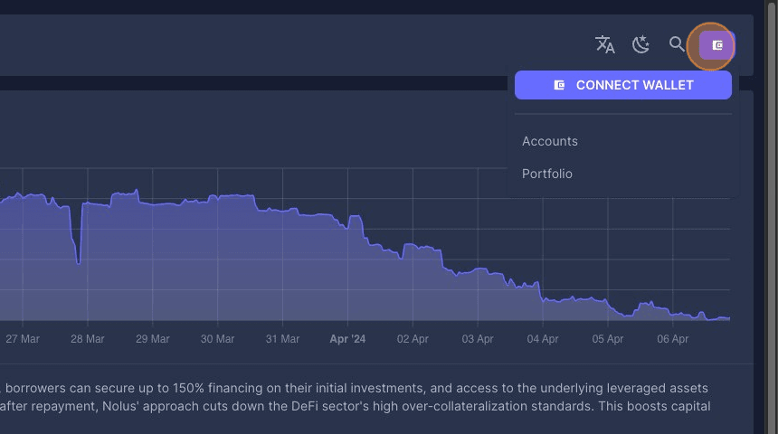 2. Click the Wallet icon and click Connect Wallet