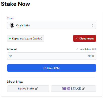 Enter the amount you want to stake and click the “Stake ORAI” button.