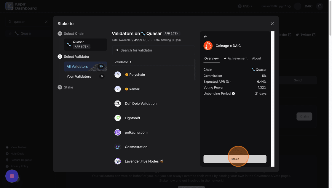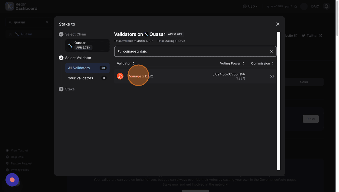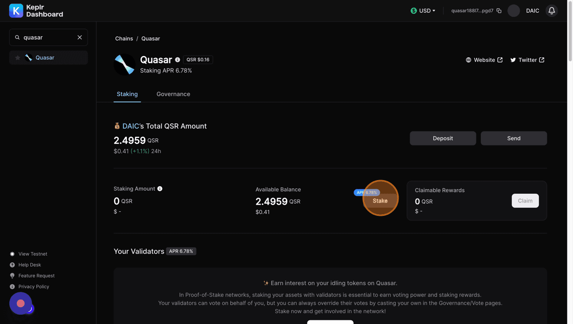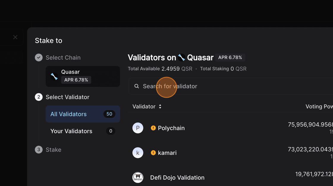 You can start earning staking rewards once your QSR tokens are successfully delegated to a validator