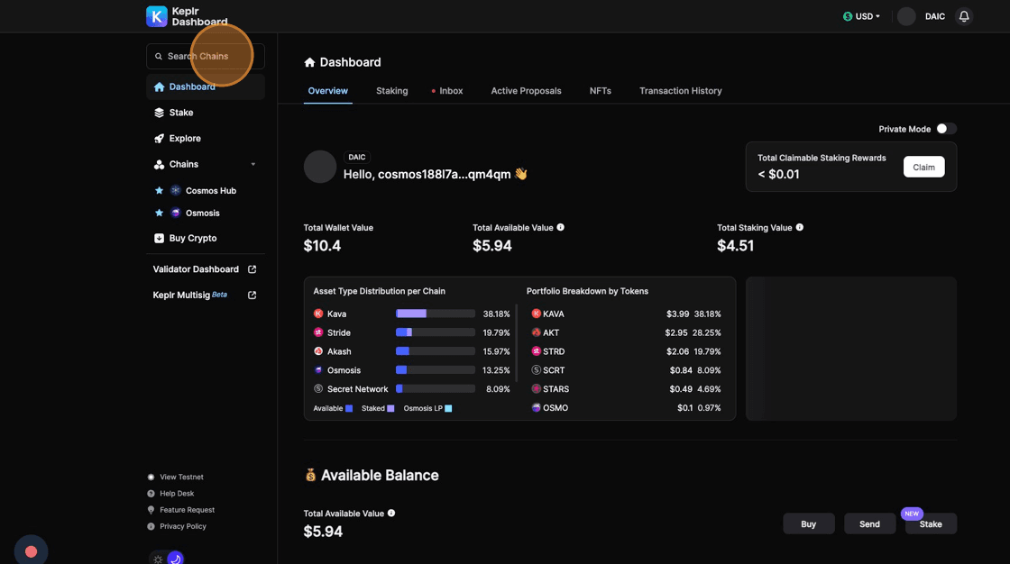 2. Click the Search Chains field and type Secret Network