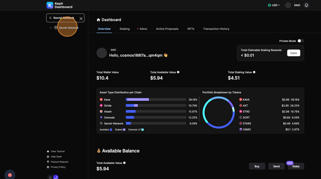 3. Click Secret Network