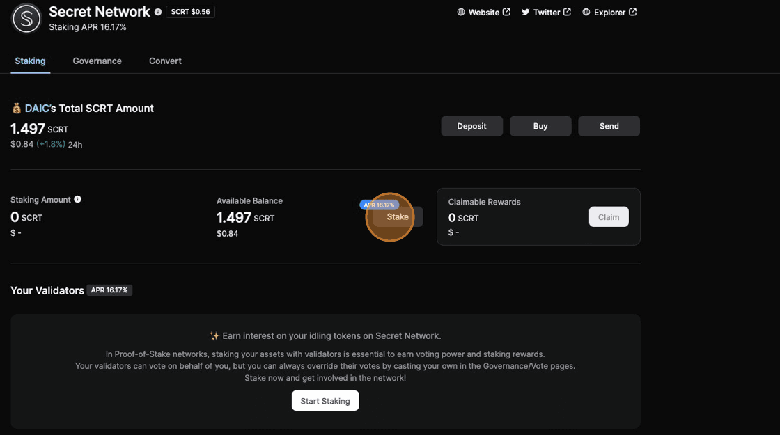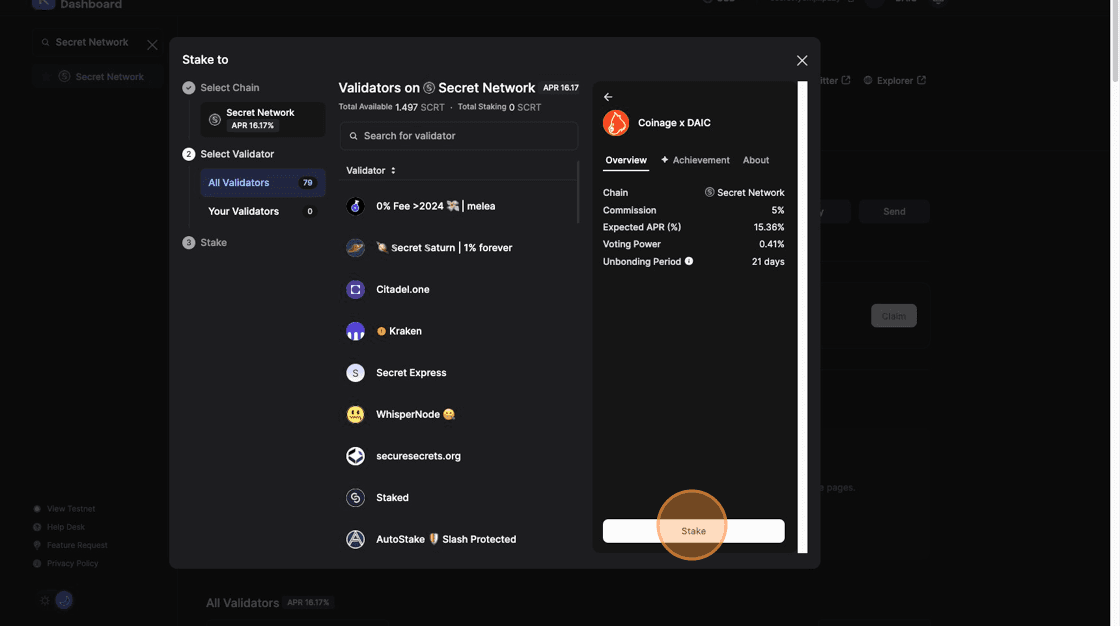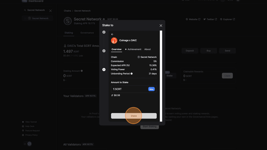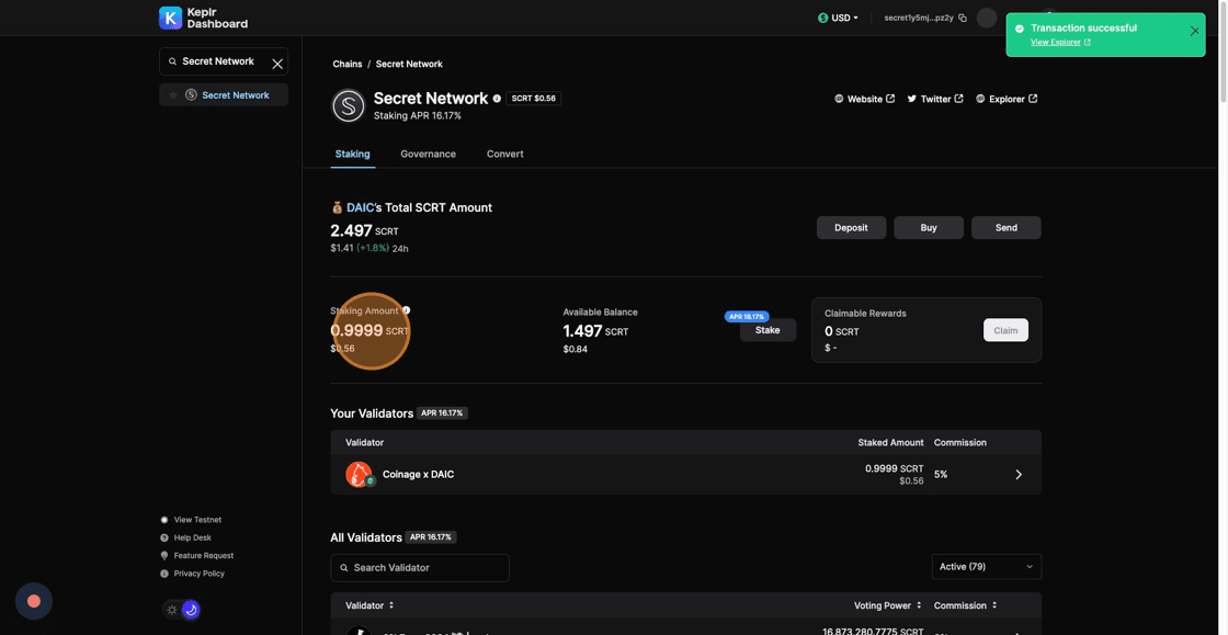 11. Congratulations! Your SCRT tokens have been staked