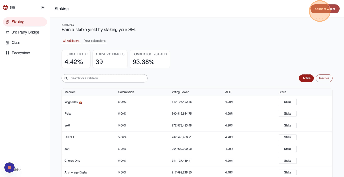 The return from staking SEI varies based on the network's overall staking participation, real yield, and specific validator commission.