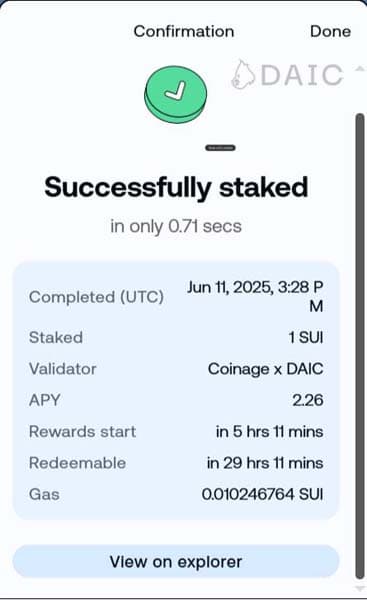 6. Congratulations! Your SUI tokens have been staked