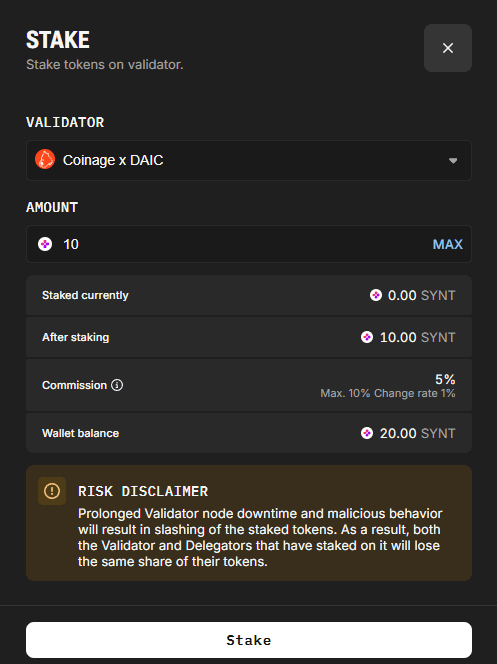 - Navigate to the Synternet (SYNT) staking portal: https://staking.synternet.com/
