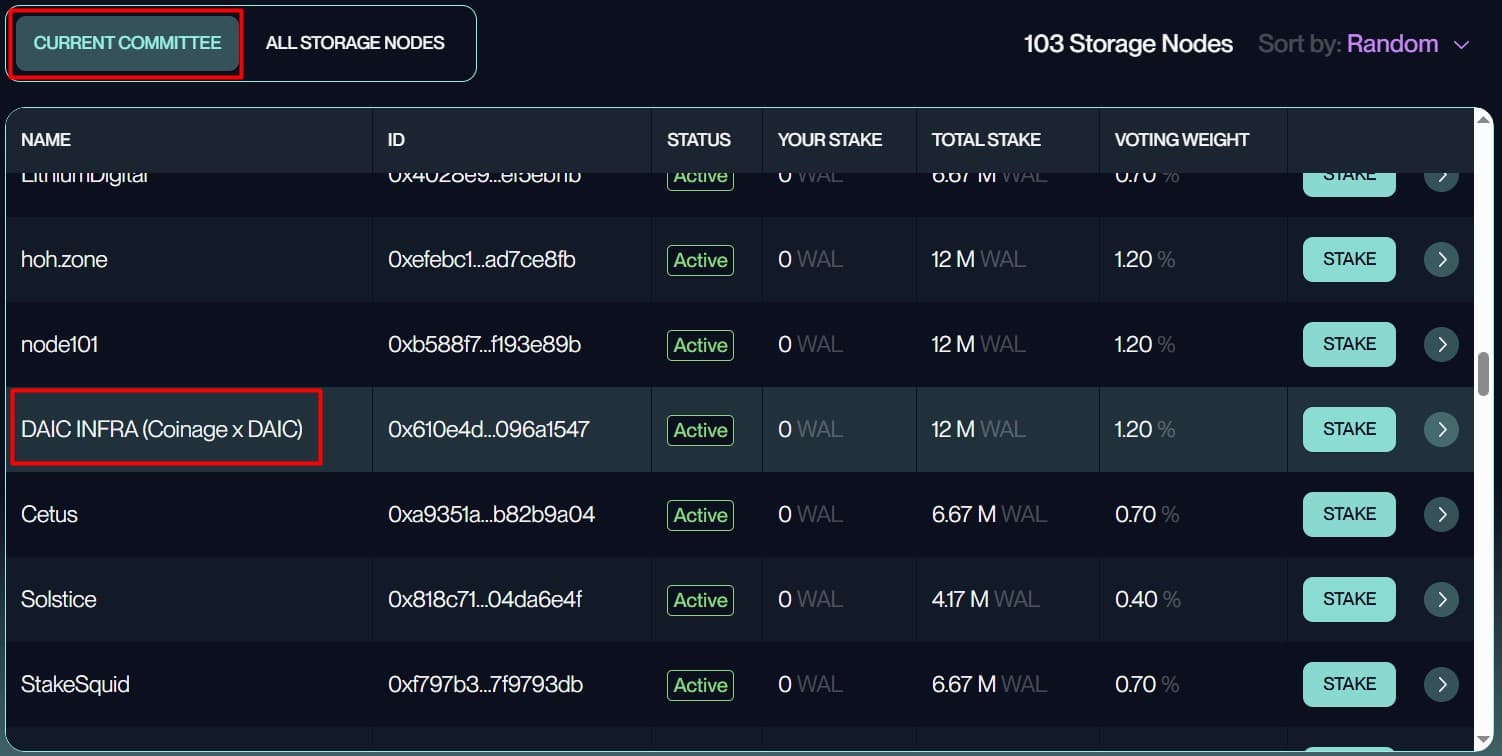 Crucial Tip: To actually earn staking rewards, it's essential that you delegate your WAL to a validator who is part of the "Current Committee". Choosing a node outside this active committee means you won't receive rewards for that period, even if your WAL is staked.