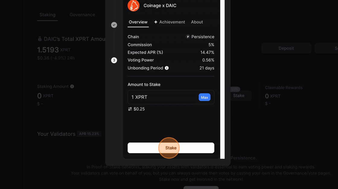4. Click Stake