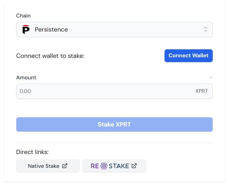 Persistence One offers a variety of convenient options for traditional XPRT staking. You can stake your XPRT directly through Keplr's online platform, using your Keplr Wallet, or utilize Persistence's native pWallet for a seamless experience.