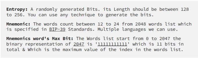 At this point, you might be wondering: if it’s just a literal translation of a long number, what makes a secret recovery secure? Well, actually, that is more to do with how the entropy was generated. To explain, the entropy must be very long and random, otherwise someone might be able to guess it. As long as the entropy is chosen at random and made up of more than 128 bits, it’s sufficiently secure that no person or computer will be able to crack it.